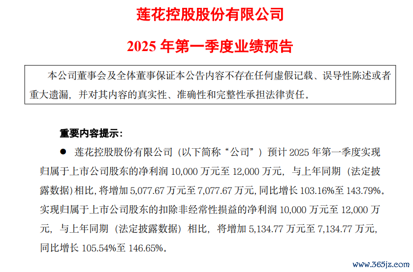 莲花控股:第一季度净利润同比预增103.16%-143.79%莲花控股:第一季度净利润同比预增103.16%-143.79%